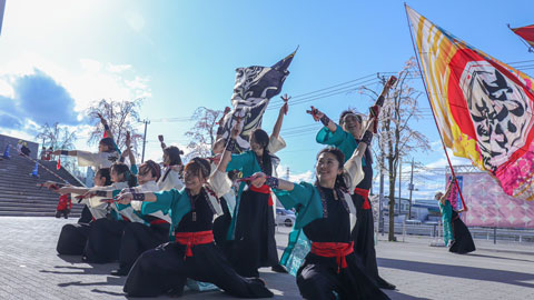 衣装・楽曲・振付は和洋折衷。 シンプルな演出で全身全霊で踊り、歌い、旗を振る私たちと、一緒にYOSAKOIしてみませんか?